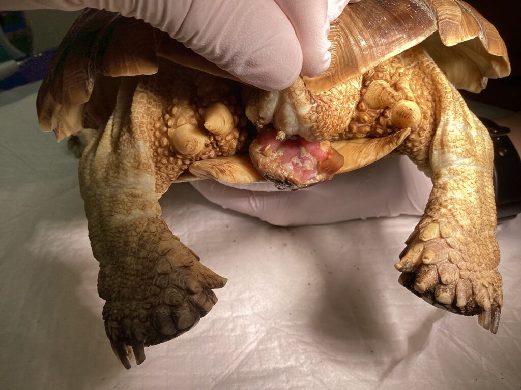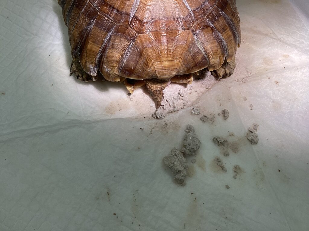 カメは脱水や体調不良で結石が生じやすく、生じた結石は大きくなると排泄を阻害し、場合によっては衰弱して亡くなってしまうこともあります。